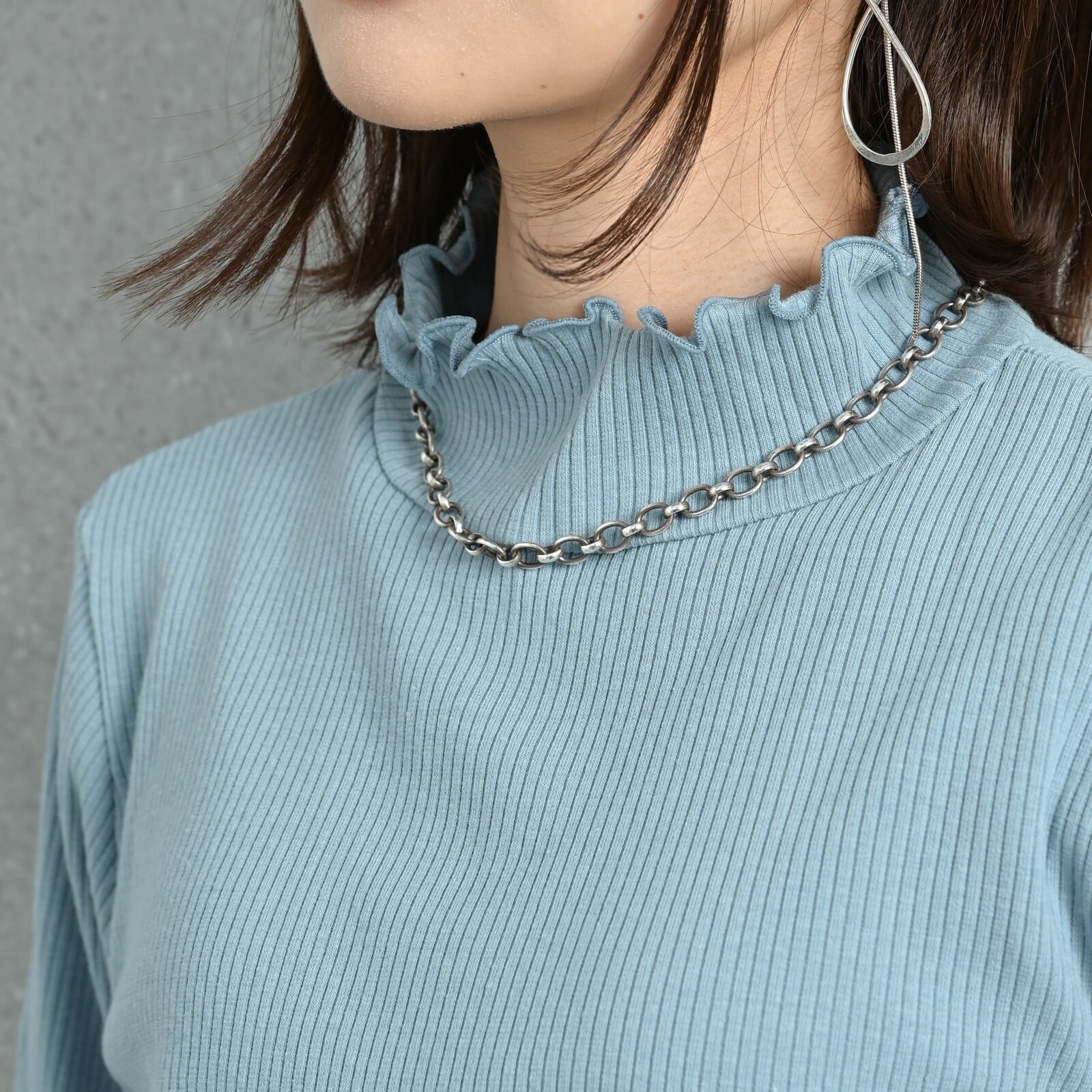 【裏地】なし【透け感】オフのみややあり【伸縮性】あり【モデル着用カラー】1枚目:グレーMIX / 2枚目:サックス【モデル身長】160cm