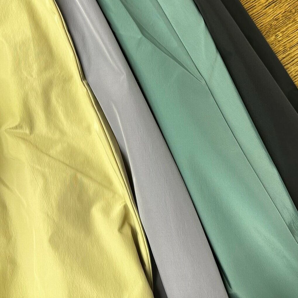 軽やかなタフタ素材は、上品な光沢感があり、高級感溢れる印象を与えます。ウエスト部分にはゴムが入っているので、快適なフィット感を実現。また、レギンスやタイツを合わせて秋冬の装いにもおすすめです。